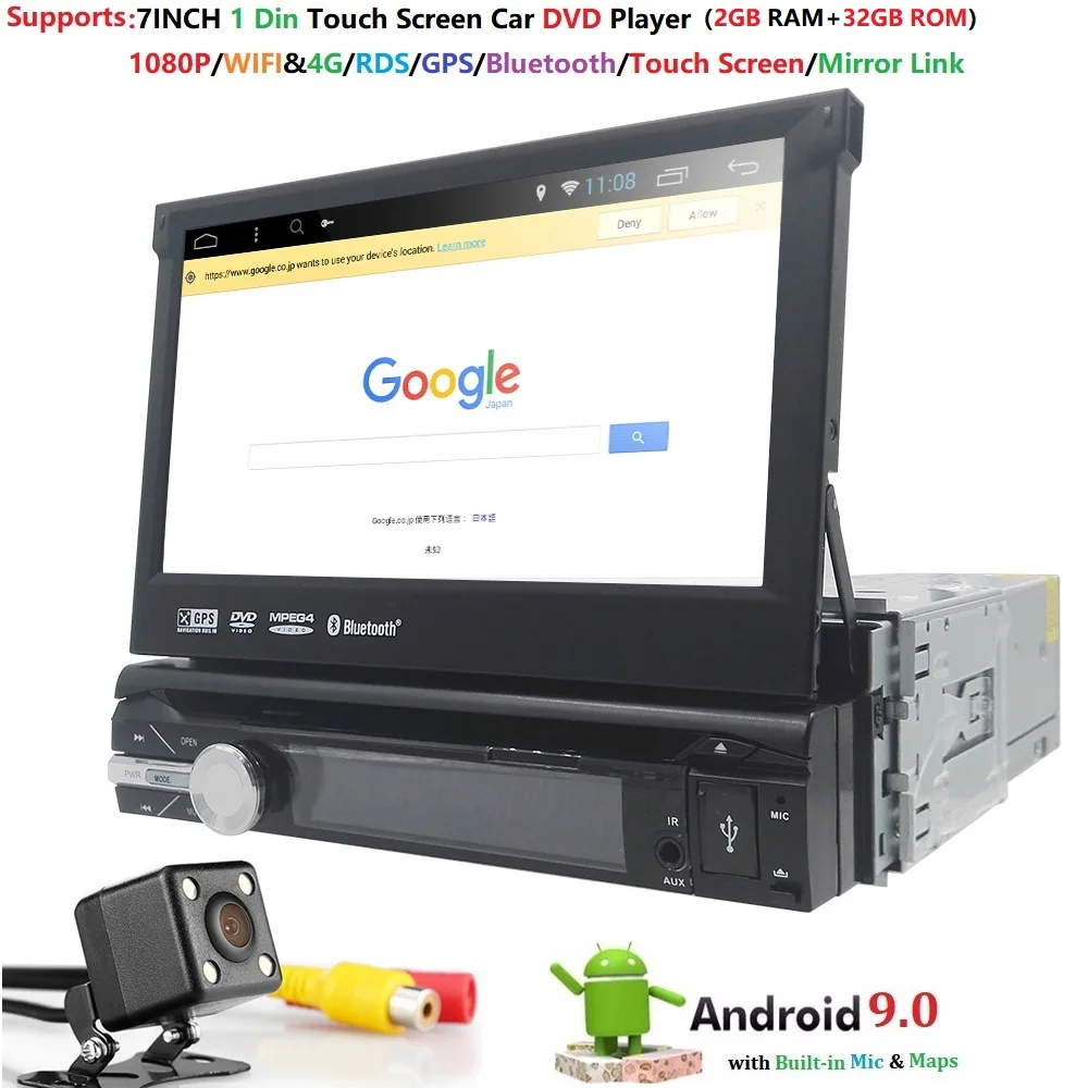 Android 9.0 Universal 1 Din Car video Player GPS Navigation In-dash Detachable Front Panel 1 din Ca